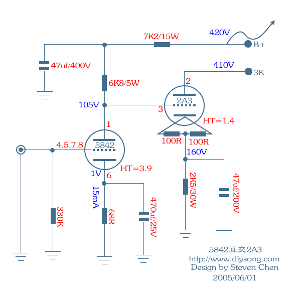 - B+±µ°h¥æ³s¹qªý9.1K¤Î°h¥æ³s¹q®e100UF/450V¦Ü5842¤Îª½¥æ2A3¦@¥Î