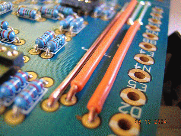 上圖:跳線請在測出電源板電壓無誤後再接上,並且焊上接線端子(就是PCB旁的圓洞) | |