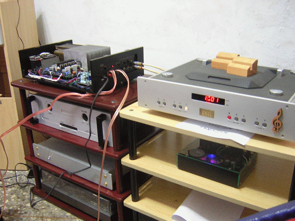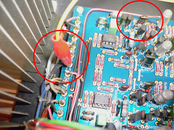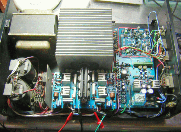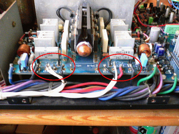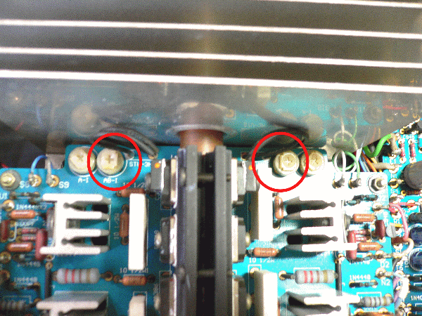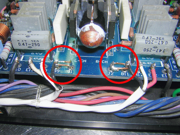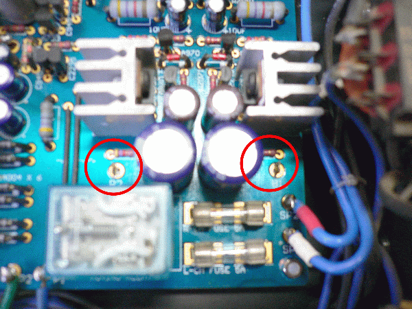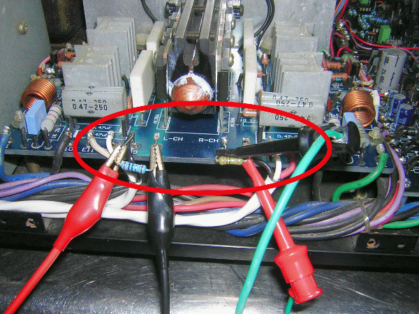 觀察30分鐘如果沒有意外,可以感覺散熱器有些微溫,這時查看偏流有無變化,然後量測喇叭端有無輸出直流,如果有直流請調整2個47KVR,此並非調整中點電壓,因為此機內建DC伺服,所以無中點電壓調整機制,調整47KVR是要讓DC伺服動作,以達到控制輸出直流之目的. |
