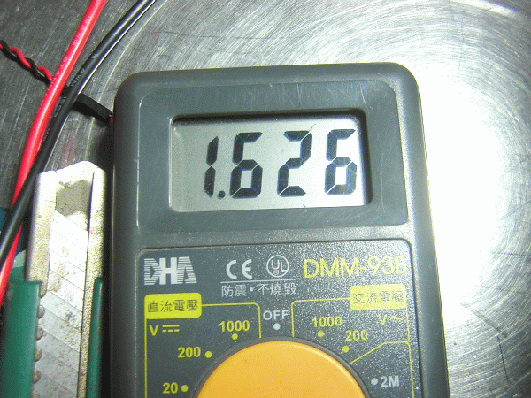 上圖:接上限流電阻量取2端的壓降,利用I=V/R來求電流(這很重要喔~) | |