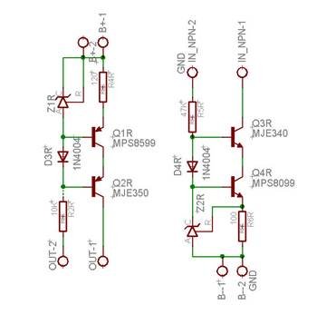 Q4為普通小電流低雜音晶體,Q3則是串疊晶體,若是在大電流,高壓的場合可用MJE340加散熱器來用,這樣的話, 整體耐壓可大於350V,若電流不大也可用2N6517,