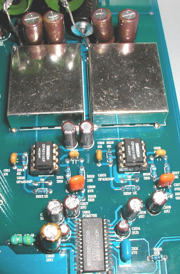 - 原廠OP是用OPA2604(外銷機是用OPA2134),在聲音表現只能算普通,任何一台DA出來的聲音都比OPA2064好,OPA2134需要改過的DA或高階的DA方可取勝;所以徵購OPA2627或OPA2111是最好的選擇。