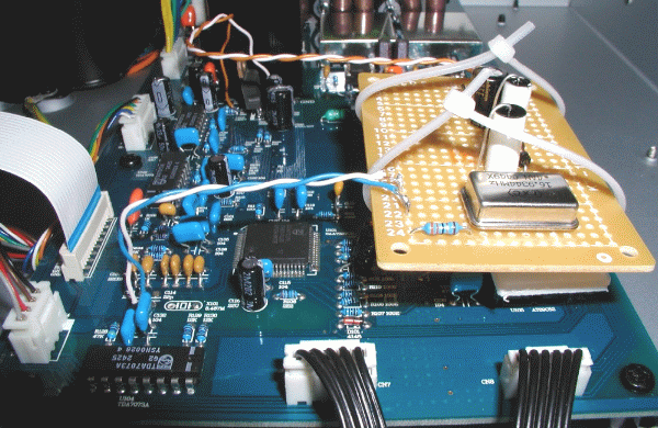 - 拖網友「GGT」的福氣,買到±50ppm的Clock,二話不說洞洞板拿來焊上去,加電源採LCLC濾除雜訊(原廠線路只並一個0.1uF