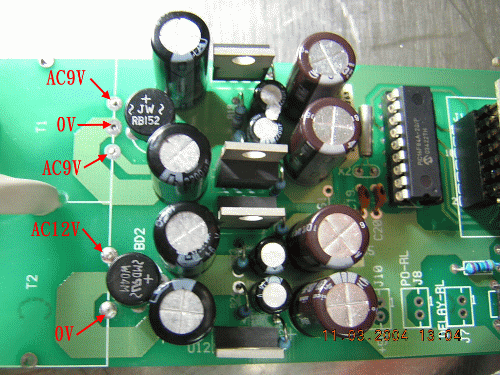 - 由圖中可以看出必須要二組電壓, 12V-0及9V-0-9V的變壓器次級,電源的零件可以選用好一點的,這部份影響聲音會有些不同,