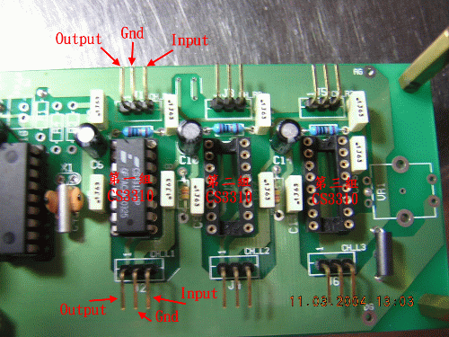 中間那腳是Gnd,右邊是輸入(Input),左邊是輸出(Output),上面的為右聲道,下面的為左聲道