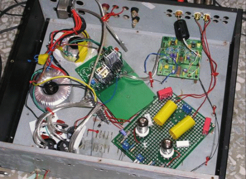 - 基本上,就是照電路圖接一接,然後把變壓器放遠一點,我的程度也不是很好,又蠻窮的。嗯~原來的DA-1716kit可拿來當直流點燈用,不過如果燈絲用6.3V