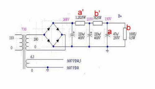 電容的耐壓要夠,如果一開始先測試電源的部分,沒上真空管,則不知道最後一個250V是不是撐得住?