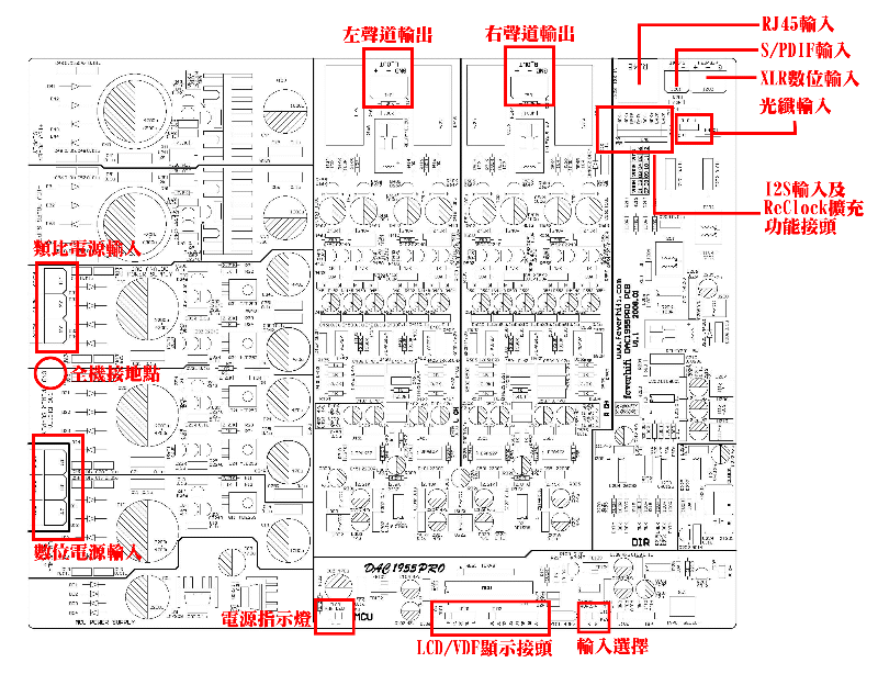 ¤W¹Ï:³o¬ODAC1955proªºPCBªO¦L¨ê±ªº¦U³¡¦ì¥\¯à¹Ï¡AY¤£²M·¡ÂI¹Ï¥i¬Ý¤j¹Ï |