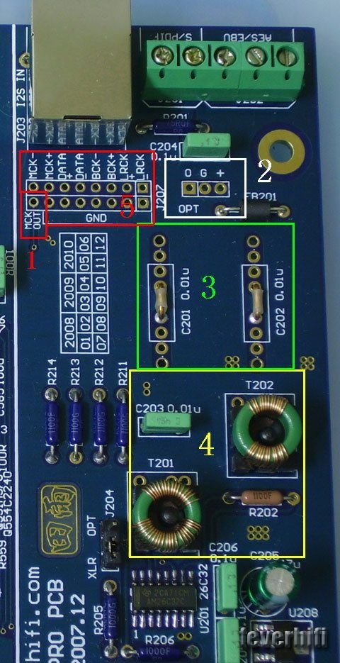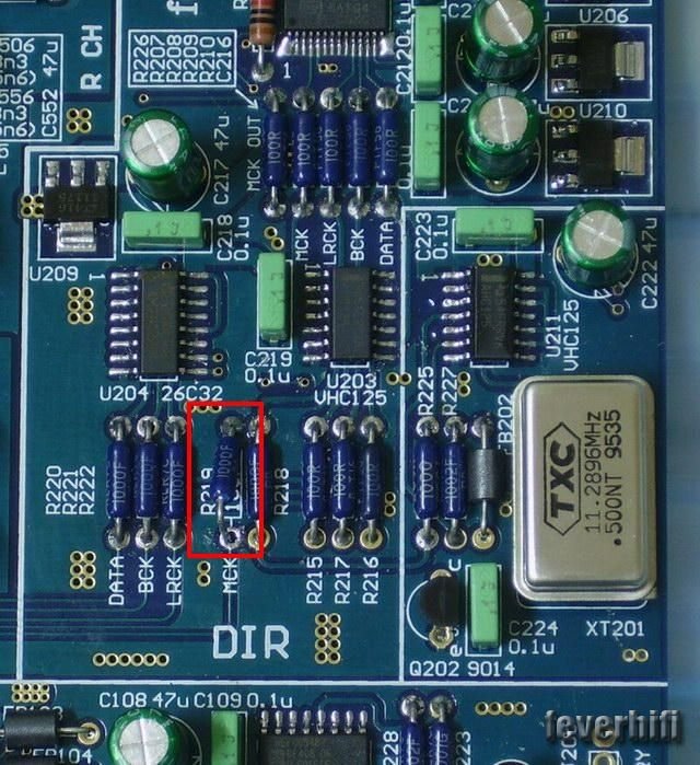 Yn¨Ï¥ÎDAC1955Pro¤º«ØªºRe-CLOCK¥\¯à¡A½Ð±NRe-CLOCK³¡¥÷¦w¸Ë§¹¦¨«á¡A±NR219¡A¤]´N¬OPCBªO¤W¦³¦L¨êMCLKªº³¡¥÷Â_¶}(Â_¶}ªºì¦]¬O¤ÁÂ_¥ÑCDÂà½L¨ÓªºMCLK«H¸¹)¡A³o¼Ë·í¨Ï¥ÎI2S¼Ð·Ç¿é¤J®É¡AXT201ªºCLOCK«H¸¹«Kª½±µ°e¤JDAC´¹¤ù¡A¦Ó¿é¥XªºCLOCK«H¸¹¡A«K¥Ñ74AHC125½w½Ä¿é¥X¡A¤@¼Ë³z¹LI2S¼Ð·Ç¿é¥X¨ìCDÂà½L¡A³o¼Ë´N§¹¦¨¨Ï¥ÎDAc1955Pro¤W¤ñCDÂà½L§ó°ª¶¥ªºRe-CLOCK.. ½Ðª`·N¡AR225»PR219¥un¿ï¤@Ó¦w¸Ë§Y¥i¡An¨Ï¥ÎRe-CLOCK¥\¯à®É¡A¸Ë¤WR225¡AYn¨Ï¥Î¥~³¡ªºMCLK°T¸¹®É¡A¸Ë¤WR219. |