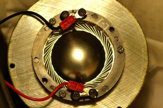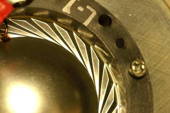³o¬O¤@Áû©î¶}ªº Altec Lansing ªº°ªµ³æÅéÅX°Ê¾¹High Frequency Driver¡A©î±¼I»\¤§«á¥i¥H¬Ý¨£¥¿¤¤¥¡ªº¾_½¤¡A³o¤@«¬·f°t¸¹¨¤©Ò¨Ï¥Îªº°ªµÅX°Ê¾¹¡A¥Lªº¶ê³»Dome¨Ã¤£¬O´Â«e¡A¦Ó¬O¥W¤Uªº³¡¥÷´Â¦V«e¤è¡A©Ò¥H¬Ý¨ìªº³o¤@±¬OI±¡C