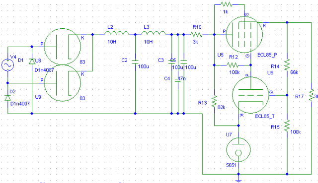 電路設計為了測試這對屏極電感,因此使用最簡單的 5842 共陰放大直交 6B4G。