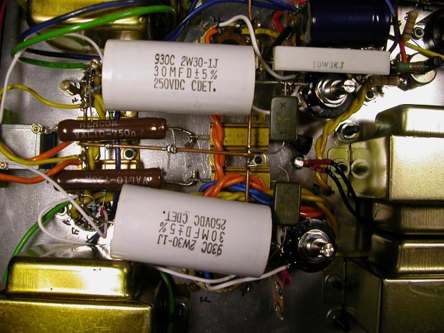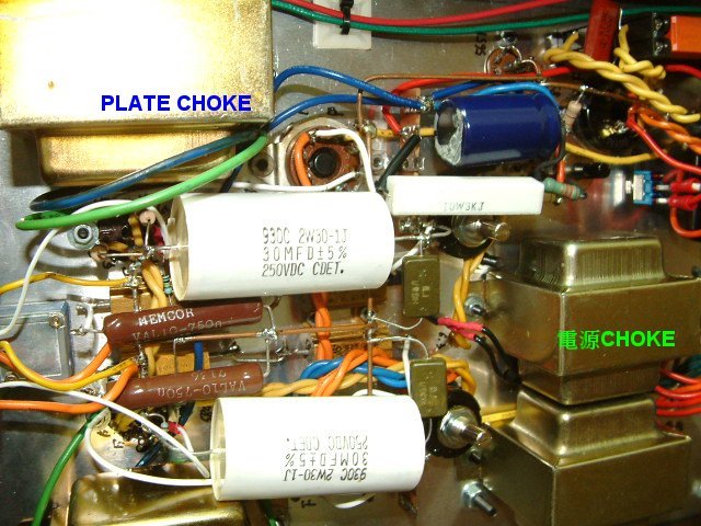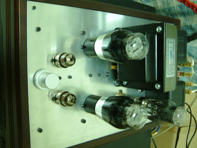 上電試聲。使用如 83 之類的汞整流管,記得第一次使用最好點半個小時以上再送高壓。而使用頻率不高的話(每 3~5 天聽),最好先點熱燈絲 1~3 分鐘。如果天天聽的話,預熱燈絲的步驟是可以省略的。 試聽時是使用 Sylvania CAA 6B4G 與 Raytheon 5842WA。聆聽的感覺是很平衡的聲音,低音飽滿卻不很沈,而是 QQ 的感覺。中音明顯,如同 2A3/6B4G 的特色一般。高音飄飄的,好像有人在身邊吹氣一般。 整理了一下,個人認為使用屏極電感的好處有三: 1. 屏極電感這東西將三極管最不容易表現的低頻部份完美地呈現。以往個人比較注重中高頻的表現,現在有了這個東西,低頻不用考慮太多,加上之後一定令聽者滿意。 2. 使用屏極電感之後可以將驅動級的陰極旁路說再見。對於驅動級的旁路電容,以往對它的態度是能免則免。當然是要向增益屈服時,譬如 6C45P-E 推 300B,只好慢慢地一個一個電容去試。它對整體的聲音影響相當大,容值大一點低音出來了,高頻就少了;小一點中高漂亮,可是低頻不見了。有時候更令人氣結,偏偏就是找不到那個差不多的電容值,只好向高低其中一方委協。 3. 驅動級電源供應的需求下降了。由於屏極電感的直流阻抗不大,此例為(131-126)/0.0197 = 254,電壓降為 5V,若是對於功率與驅動級分開供電的系統而言,其 B+ 不再是二三佰伏特以上的高電壓。而對於那些改機的朋友而言,屏極電感僅需串在屏極與原負載電阻之間,並將負載電阻與電源間的退交連電容改到原負載電阻與屏極電感間即可,算得上是相當方便的改機方案。