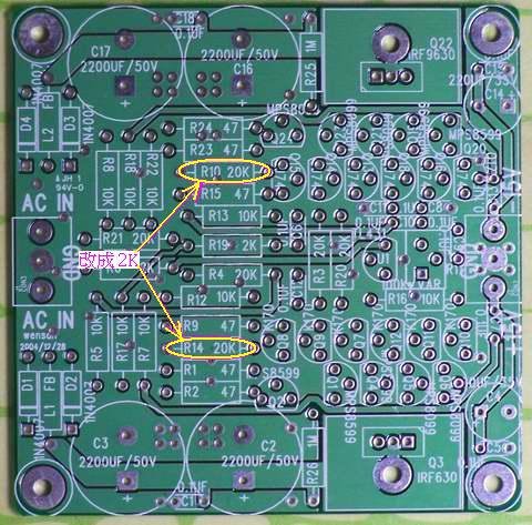 注意!R10、R14的阻值由 20K修正為 2K,而 PC板上仍然是印 20K,裝配焊接時須特別注意。