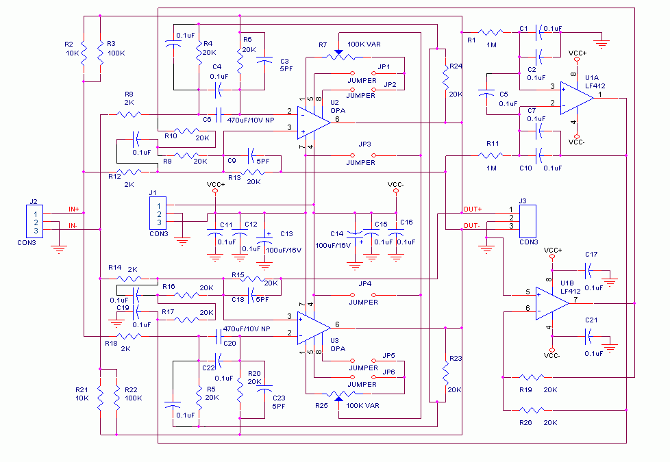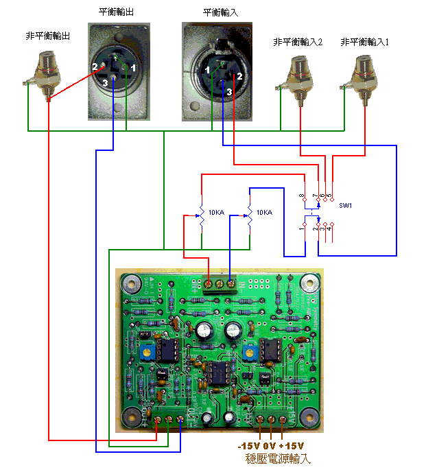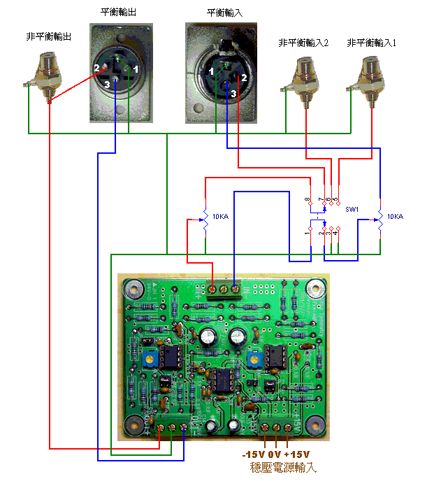 平衡輸入時的電壓增益為十倍,輸入阻抗約100K。