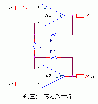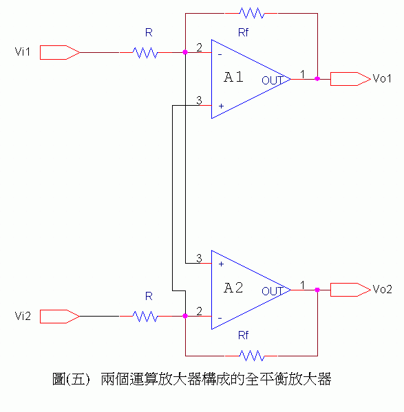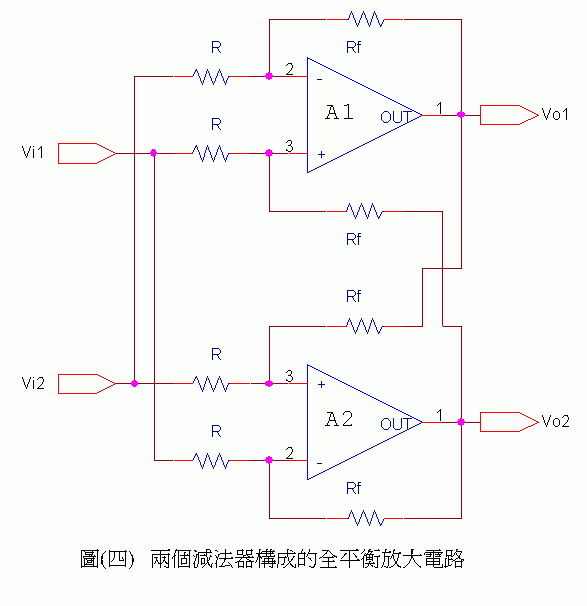 圖(四)這個兩個減法器構成的全平衡放大電路其實跟下圖是等效的,