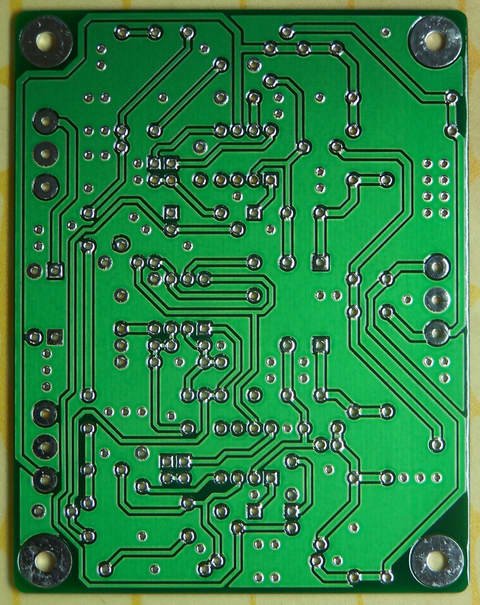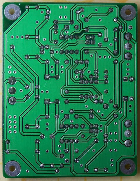 PC板零件面與焊接面全都鋪銅做為接地面,增加屏蔽的效果。而且還多鑽了很多小孔,貫穿上下兩個接地面,用以降低接地面的阻抗。