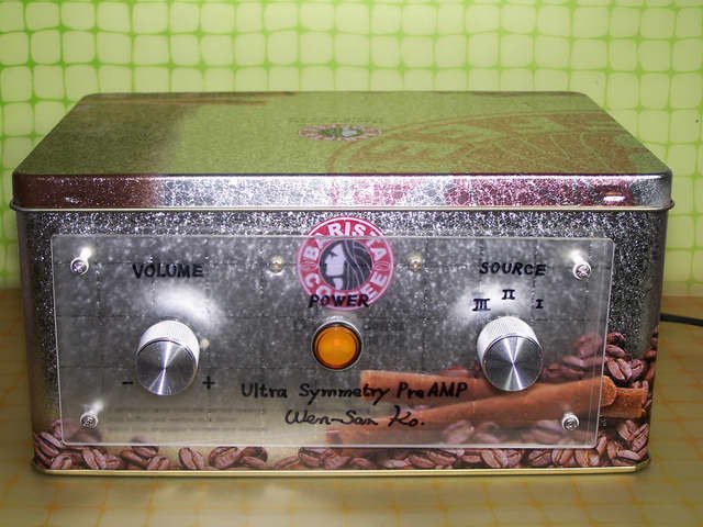 電路做好當然須要裝到機箱裡去,不過我一向捨不得花錢買機箱,所以照慣例,這個 Ultra Symmetry 平衡式前級放大器當然是裝在餅乾盒子裡。