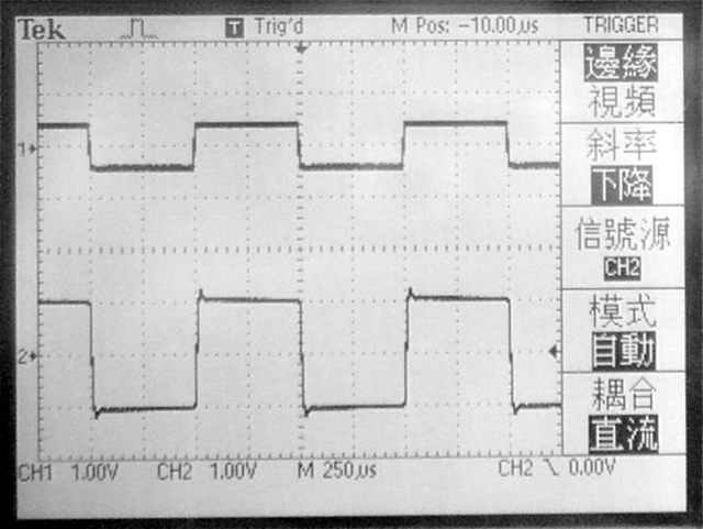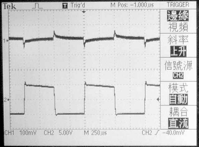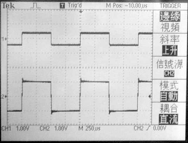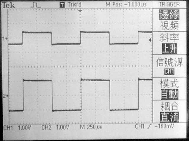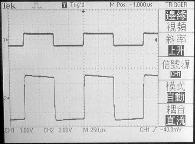 【使用一般輸出變壓器加上2200PF/250V補償電容時的1KHz方波響應】