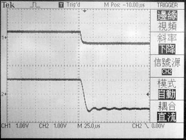 【將驅動級的穩壓電源兩聲道分別加上退交連電路後的串音波型】