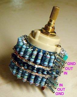 我把「梯子型Ladder Type VR」跟「串列型Serial Type VR」兩種音量控制器都裝上去試聽看看,聽來聽去,似乎比較不出什麼差別來!但我最後還是選用「串列型Serial Type VR」,雖然「梯子型Ladder Type VR」的接法在網路上被炒得很熱,但我心理還是覺得「串列型Serial Type VR」的接法雖然訊號路徑會經過多個電阻,但只會經過一個開關接點,而「梯子型Ladder Type VR」的接法,訊號路徑會經過兩個開關接點,而且我為「串列型Serial Type VR」訂製體積很小的1/8W低雜音金屬皮膜電阻,裝配起來非常小巧緊湊,所以才會比較偏愛「串列型Serial Type級進音量控制器」。