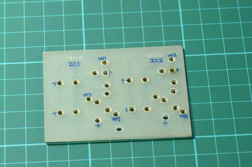 上圖:燈絲穩壓PCB的背面,線路的選擇是非常有彈性的,不管是使用OCC銅線或是使用零件腳,更有甚者,可以使用銀線來施作,相信這種HardWire工法可以滿足許多不想搭棚而又非PCB的中度使用者的要求.. |