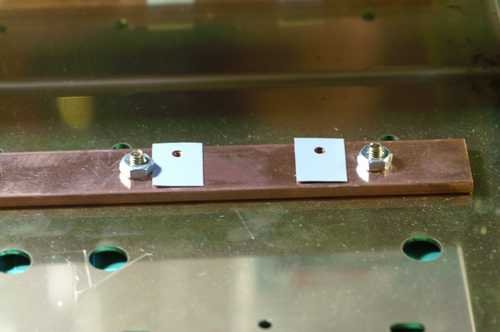 上圖:先將矽膠絕緣片放在銅製散熱棒上的螺絲孔