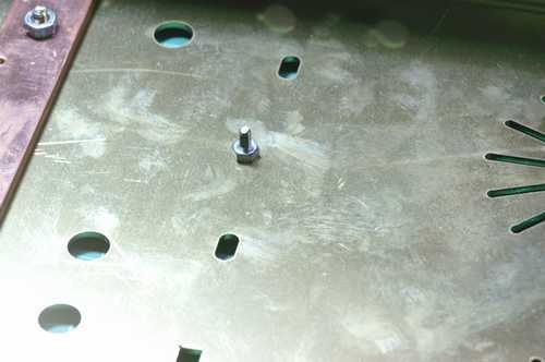 上圖:就裝在靠近OPT的下方,在目前的裝機進度下,我們只有暫時的安裝這根銅棒,因為OPT我們還沒裝上(這點我們會在之後安裝配線篇提到),而暫時安裝這銅棒的原因在於要取出78S05與燈絲穩壓PCB上的距離,讓我們看實際上的安裝步驟.