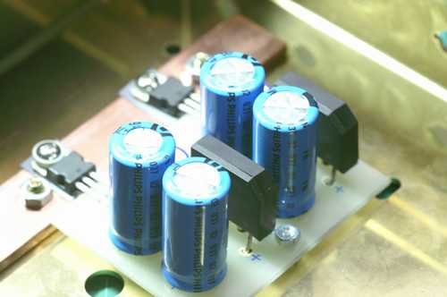上圖:另一個角度的燈絲穩壓模組,電容的極性也請注意,千萬不要裝反了