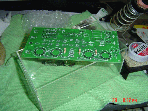 不過裝這台真的很好裝,只要記住下面幾點要訣:一,PCB電晶體不可按PCB上表示的方向裝機..PCB的電晶體圖示都為相反,小心即可二,上電測試後記得放兩顆3.3UF/400V的電呀!!