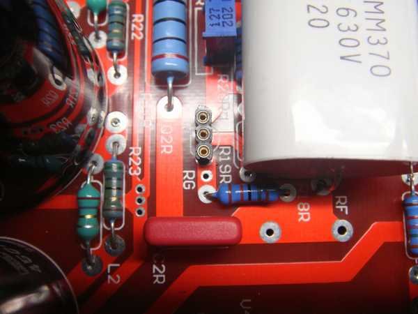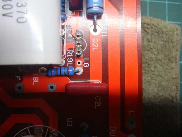 最後是G點,量取LG和RG的地方,圖中Q2要插上再量,為了方便拍照所以我先把Q2取下,這邊G點的地方我們需要的是20~30V,G點的電壓可以用VR3來調整,G點必須要低於F點60V,也就是說,在R18的跨壓必須要有60V的壓降 | ||||||||||||||||||||||||||||||||||||||||||||||||||||||||||||||||||||||||||||