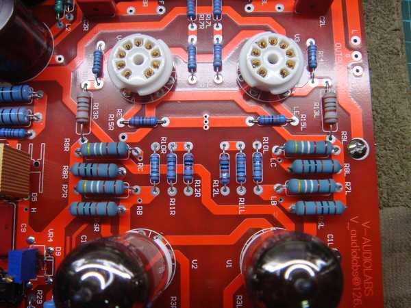 先不要插上真空管,然後將電送上,如果沒有爆炸及閃光,恭喜你,已經完成了80%以上,街下來請將手邊的電錶準備好,切到DCV的檔位,將黑棒放在PCB上標示的GND上面: | ||||||||||||||||||||||||||||||||||||||||||||||||||||||||||||||||||||||||||||