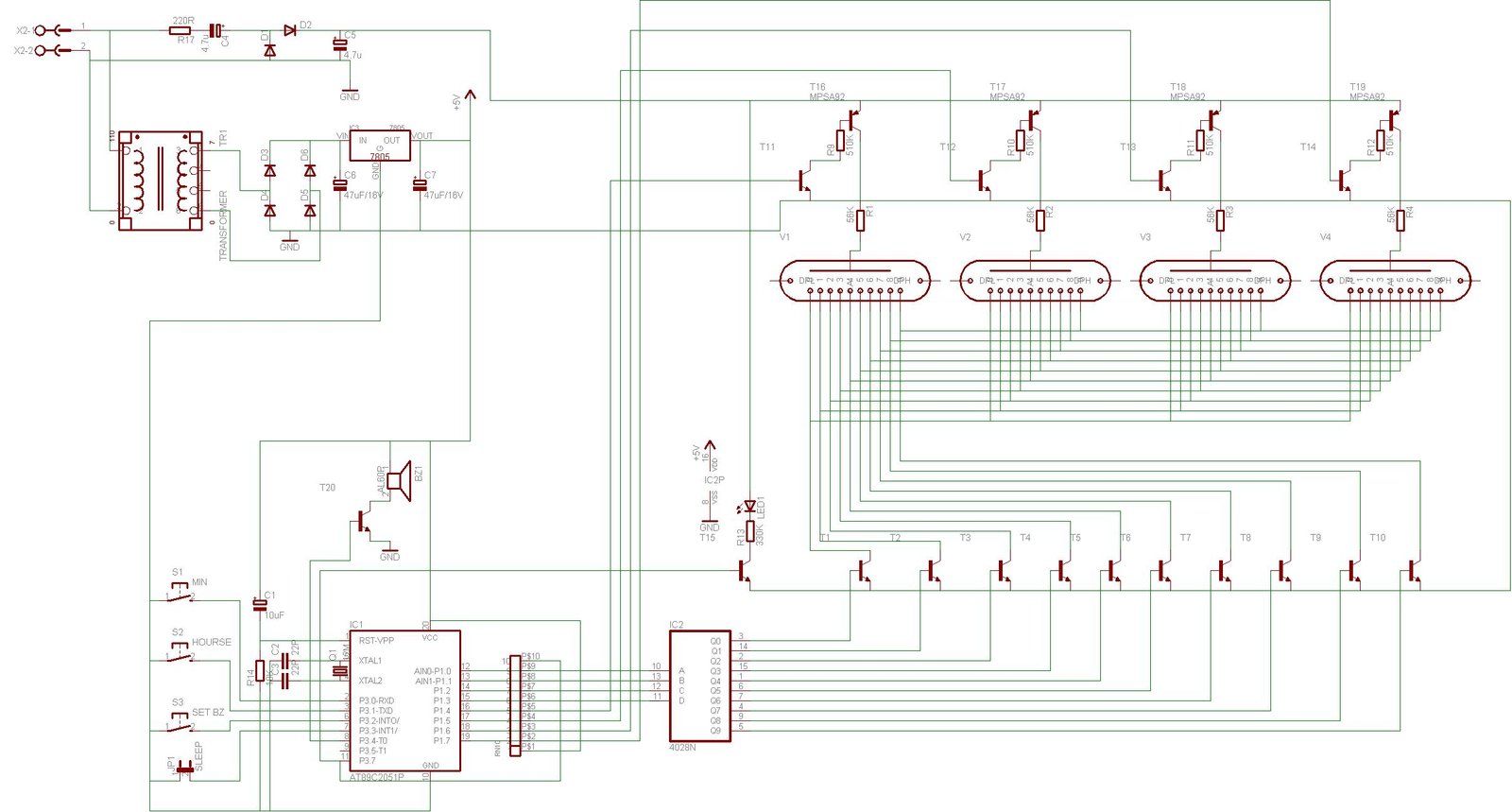 本NIXIE管時鐘,採用單晶片(89c2051)經解碼IC(4028)推動晶體(MPSA42)經由循序掃描的方式點亮NIXIE管來顯示