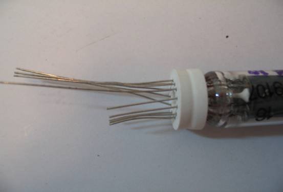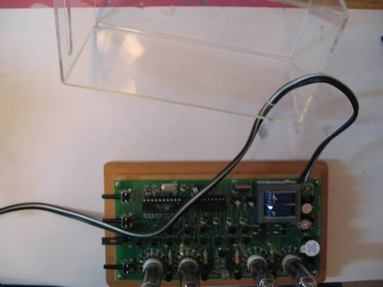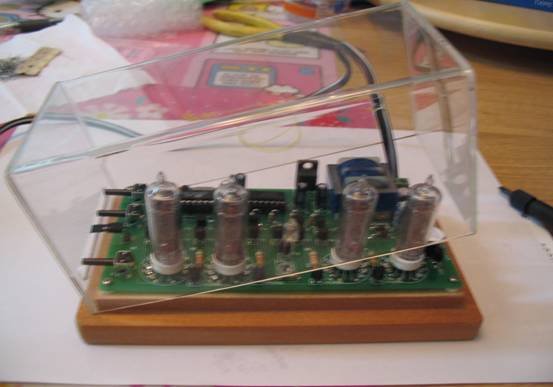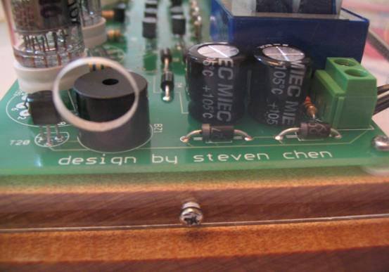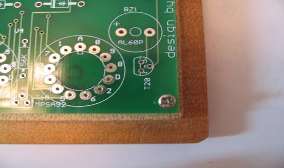 - 圖說:全部NIXIE管焊接完畢後,再依最佳位置焊接計秒的霓虹燈泡.