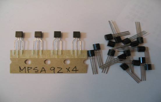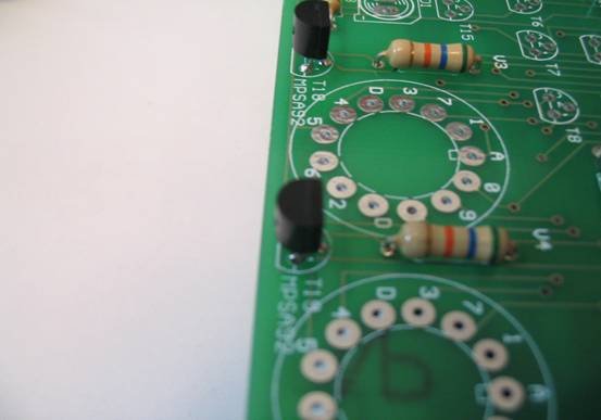 - Step4:焊接電晶體請注意電晶體編號,MPSA92(紙帶包裝) PCB板上有注明,無標明編號的電晶體都是MPSA42(共16只)