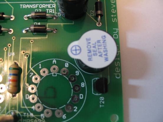 - step6:NIXIE管的焊接,NIXIE管有一白點記號,這點是NIXIE管的陽極(A),需焊接於PCB板的A點處.