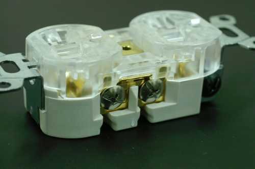 型號:FP-2R(Gold plated) 品名:古河Audio Grade 電源插座(透明、24K鍍金) 規格:標準UL、15A 125VAC,內部接點為無磁性並施以純銅24K鍍金u導體,日本古河專為Hi-End音響器材所開發高級壁插 |