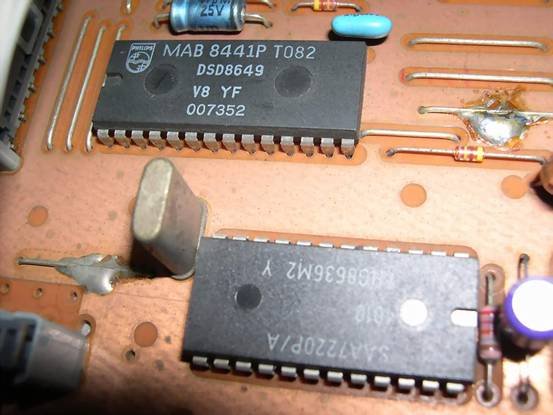 參考資料並比對電路板後,拆除原先連接SAA7220第10(XOUT)及第11(XIN)腳的XC。