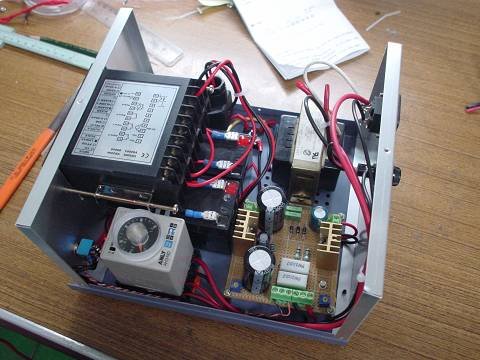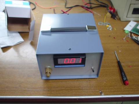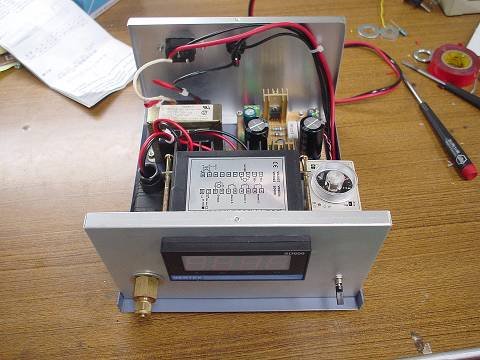 - 安裝完畢當然要測試一下,送上AC110V市電後經過所設定間後聽到”搭”的一聲,計時器跳脫;拔掉插頭由電池供電,不錯,顯示器一切正常。再來就要送到”校正實驗室”去校正一下,符合允收標準才能正式上場工作!