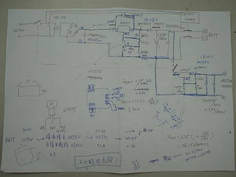 - 因為所使用的電池為DC12V串聯成DC24V,必要的修改了一些地方,如IPEAK、電阻及保護用的二極體….等。