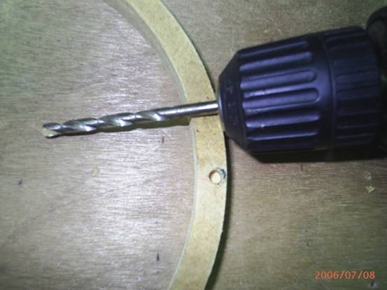 用2~3MM的鑽頭鑽個洞,鑽完後要記得用砂紙磨一磨。