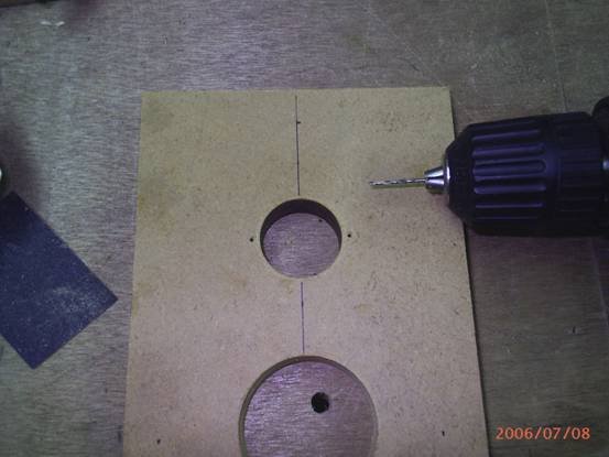 左邊板子上最小的那個洞是用圓鑿鋸挖出來的
