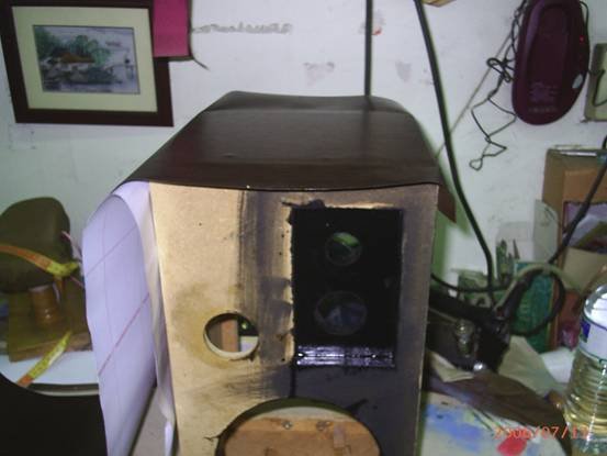 裝配好後的樣子,圖中的兩吋高音單體有換掉,之前的單體的紙盆部分被我不小心撮破了,多花了三百塊大洋(不小心的下場)