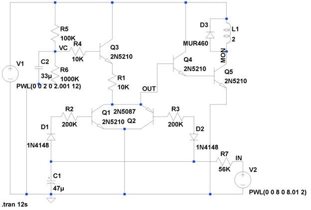 ¥u¬O®É¶¡ªºªøµu, ¦]¬°³o¬OVC1n³z¹LR1¥R¹qªºÃö«Y. ¥¿¦Vªºª½¬y·|¨ÏD2, Q1, Q3º¥º¥¾É³q, ¹q¬yª`¤JQ4¨Ï¨ä¾É³q¦ÓVout¤U°,