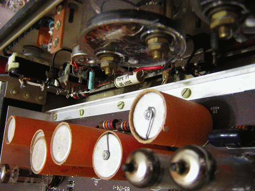 - 上圖:閃閃動人的6L6,這台機器保存的很好,內部非常乾淨