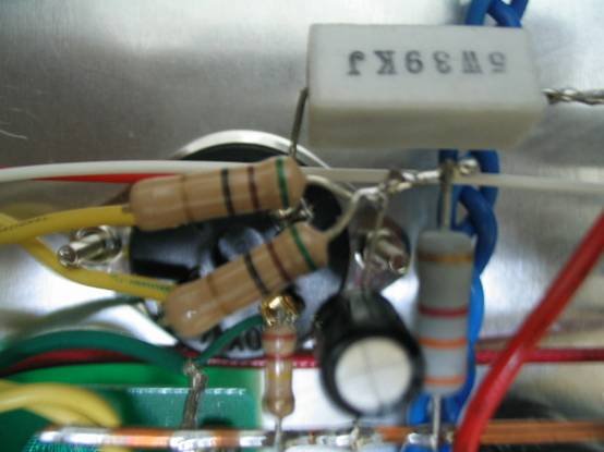 - 圖說:屏極負載電阻(39K/5W),UX-226燈絲平衡電阻(51+51ohm)